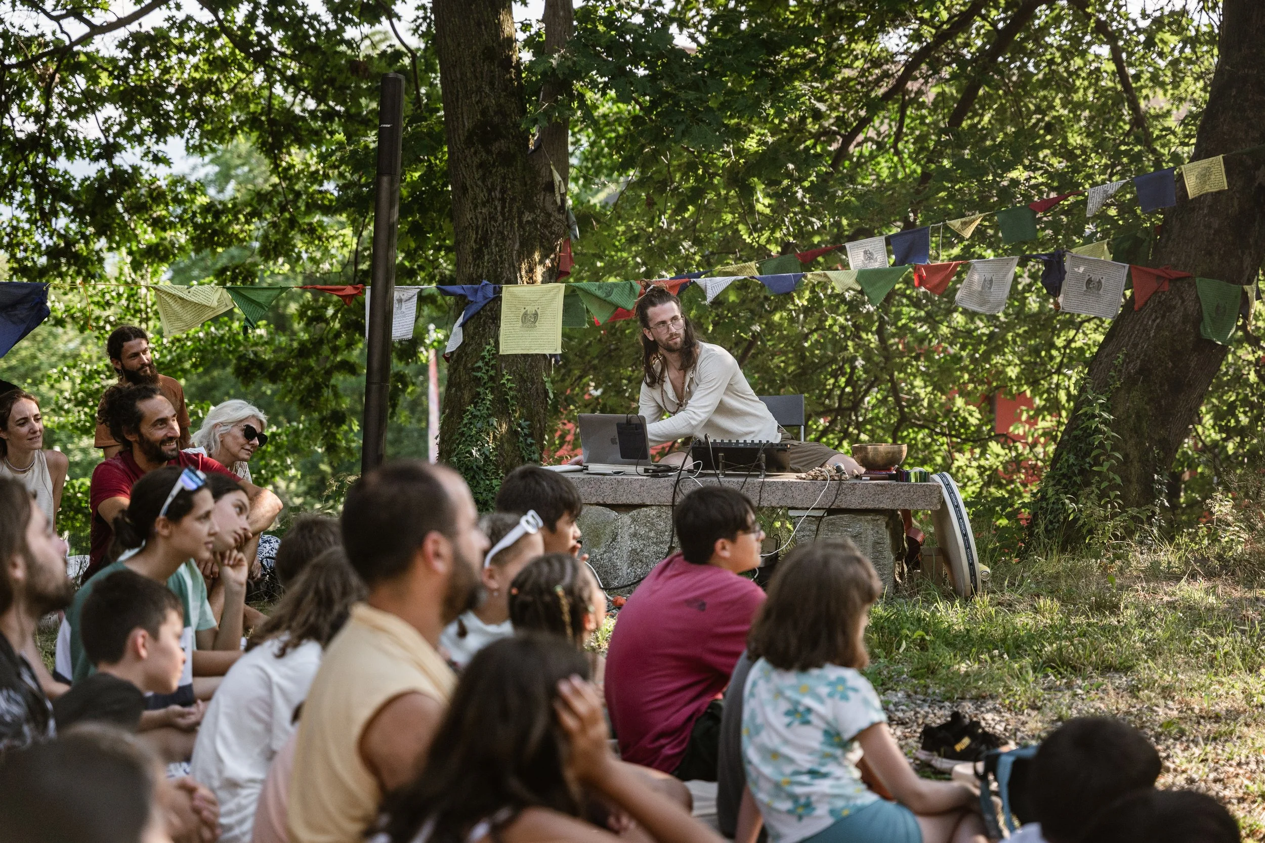 Dal 2023, insieme all’associazione Teatro Selvatico APS, collaboro con l’Albagnano Healing Meditation Centre per promuovere il progetto Educazione non formale, rivolto a bambini e bambine, ragazzi e ragazze che hanno voglia di mettersi in gioco, di provare esperienze uniche e vivere il teatro in natura, la spiritualità in uno dei centri buddhisti più grandi di Italia e la musica dal vivo che crea un legante vivo fra i laboratori e le attività, il tutto in un ritiro di una settimana che si tiene più volte in un anno.