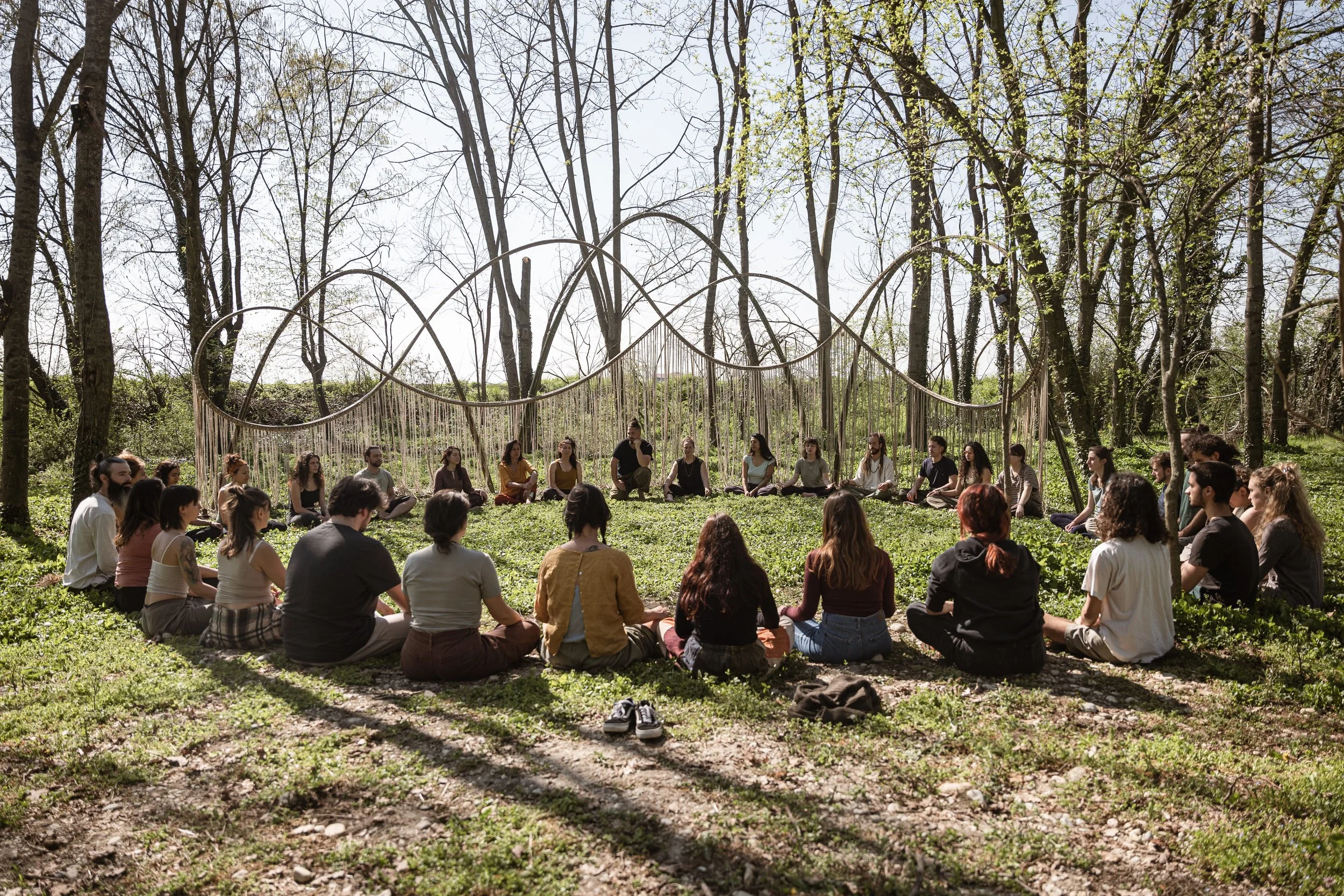 Immersione tra land art, sound design elettronico e teatro in natura aperta.